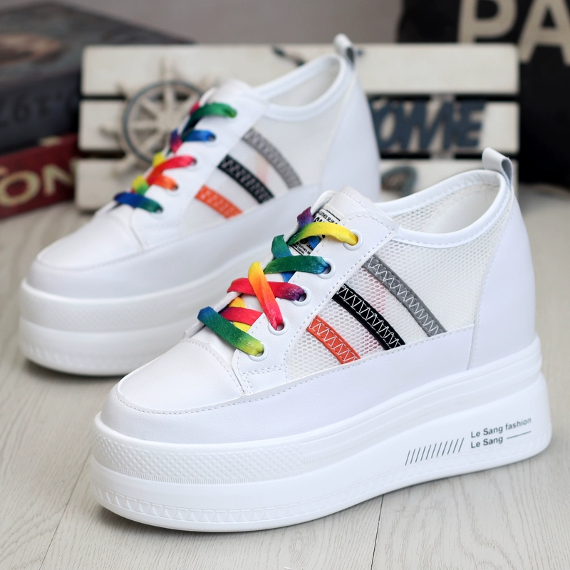Women's Mesh Shoes 2024 Summer Hollow Breathable Mesh White Shoes Women's Thick Sole Inner Increase 10CM Versatile Casual Sneakers