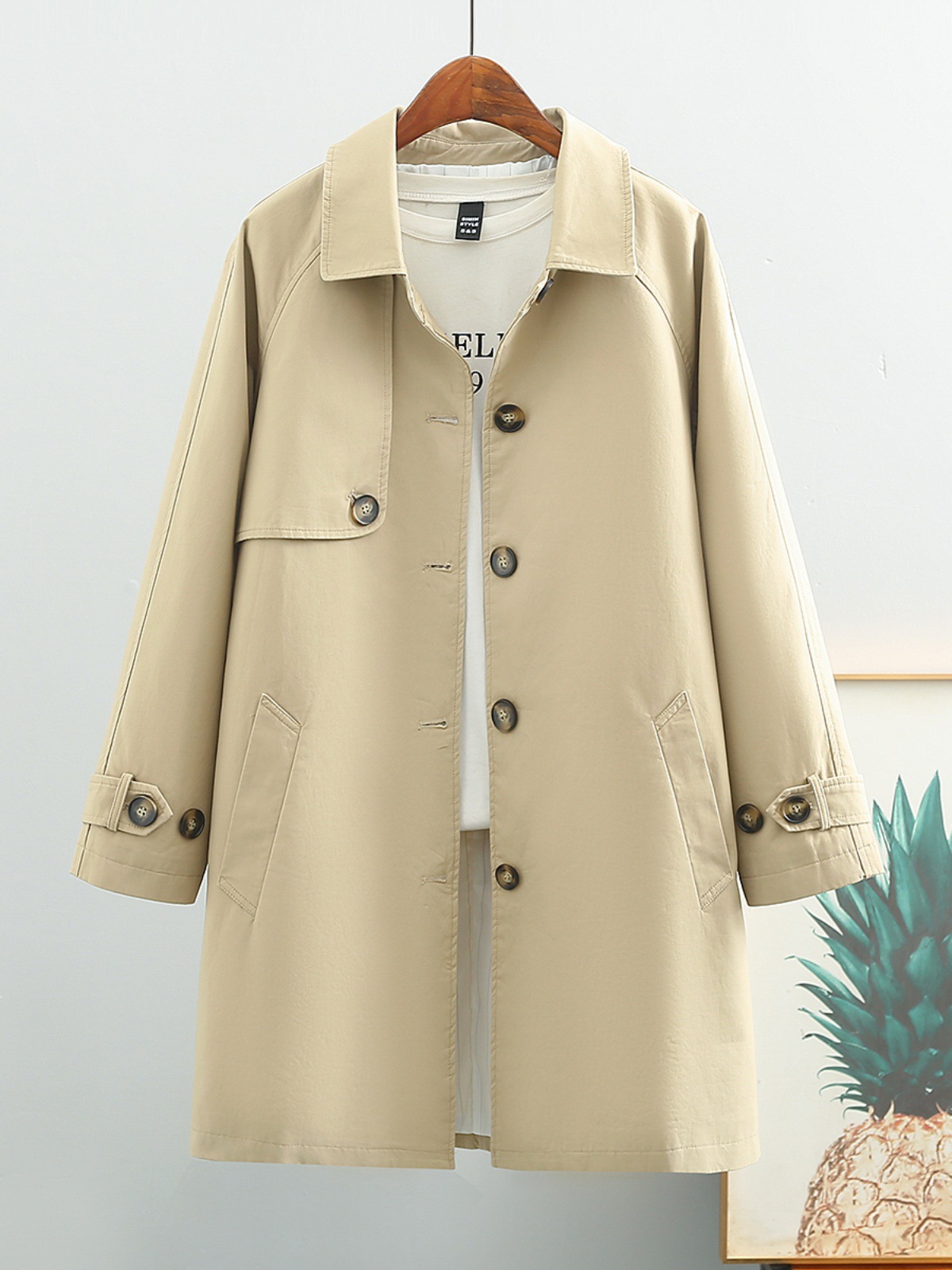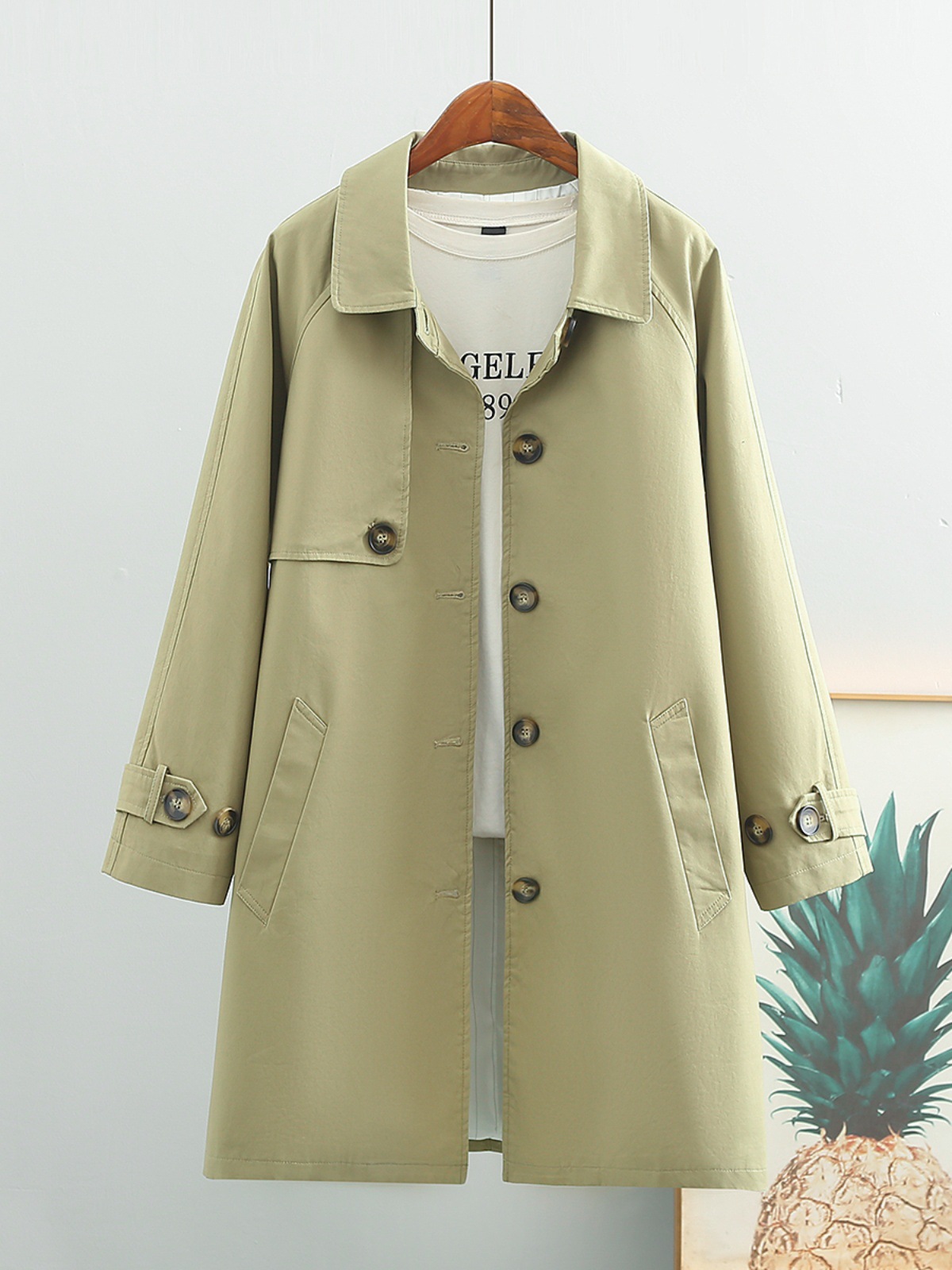 | nameOriginal | Women's Mid-length trench coat 2024 Spring and Autumn new small popular British style coat chic khaki |