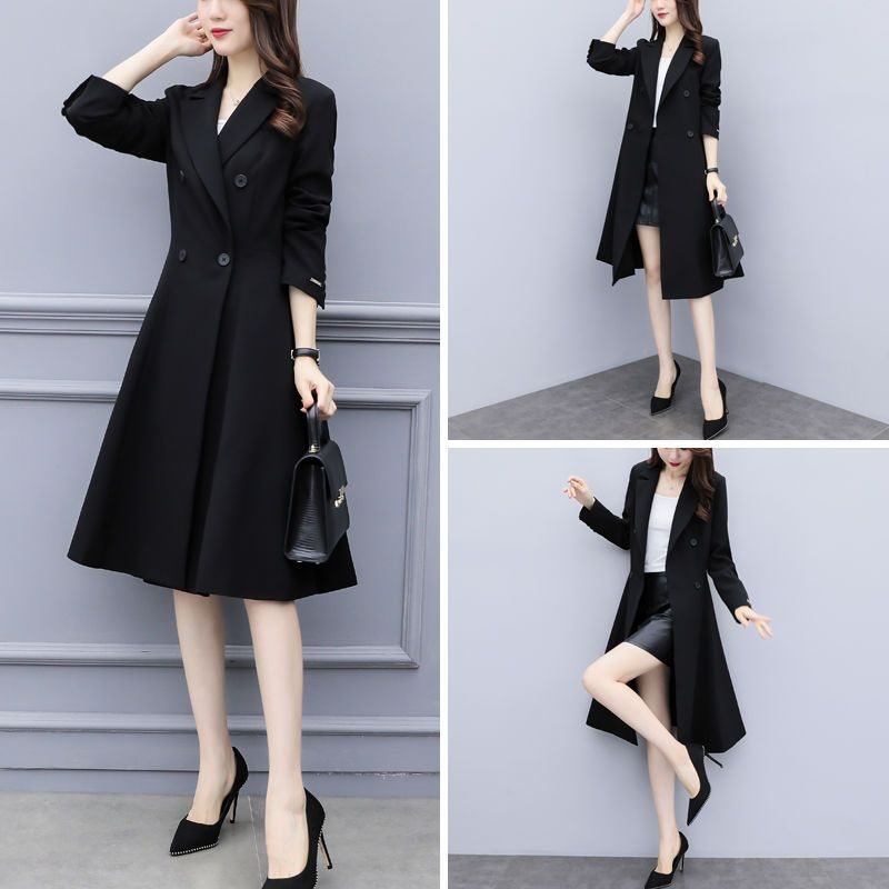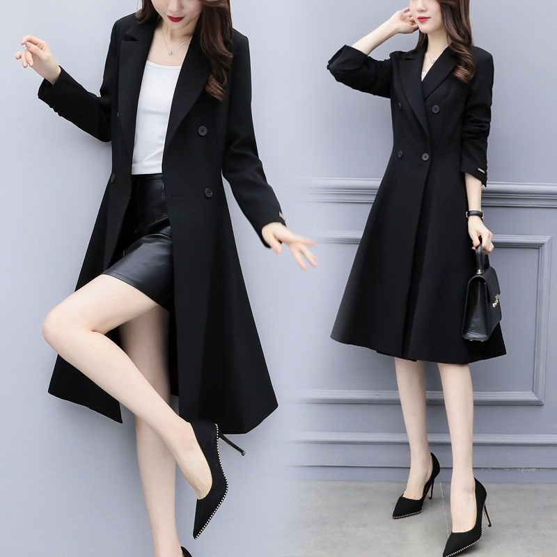 | nameOriginal | Women's mid-length windbreaker 2022 spring and autumn new black British style small temperament popular ladies coat |