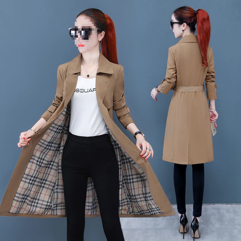 Women’s Mid-length Windbreaker 2022 Spring and Autumn New Korean-style Tight Waist Slimming British-style Women’s Over-the-knee Windbreaker Coat Trendy