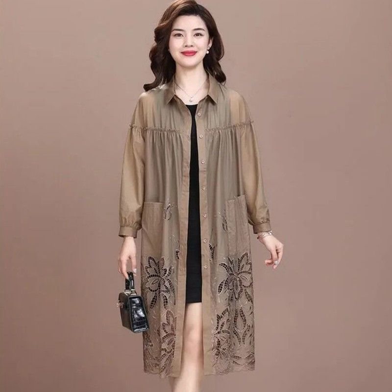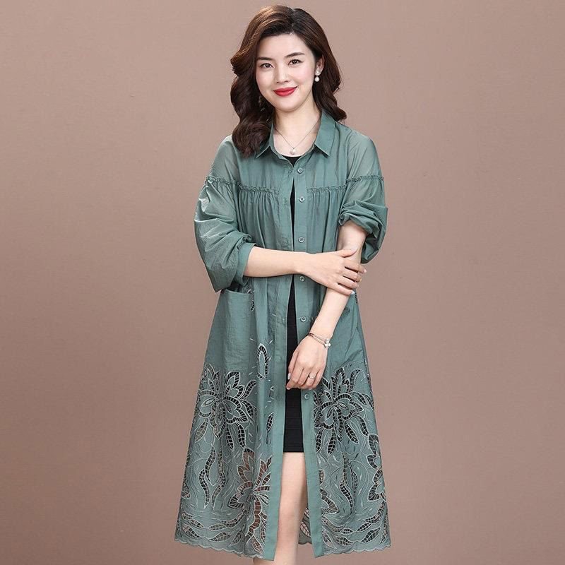 Women’s Mid-length Windbreaker 2022 Summer New Loose plus size Fashion Middle-aged Mother Sunscreen Coat Thin