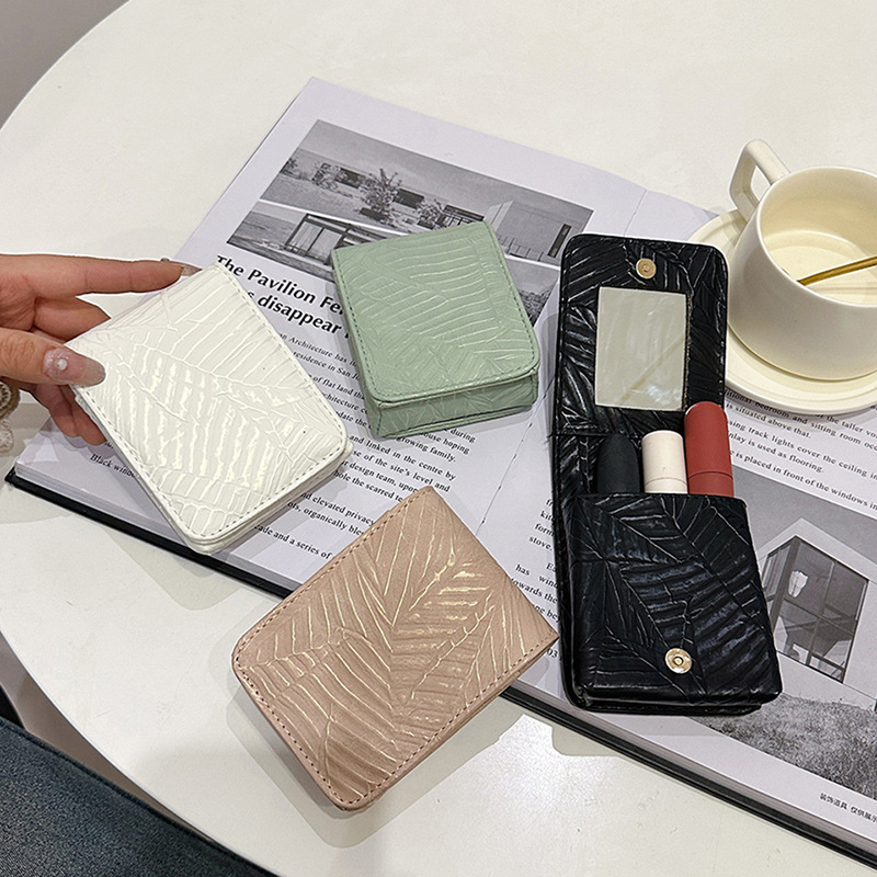 Women’s Mini Ins Style Makeup Bag Women’s Portable Carry-on Travel Mouth Red Bag with Mirror