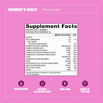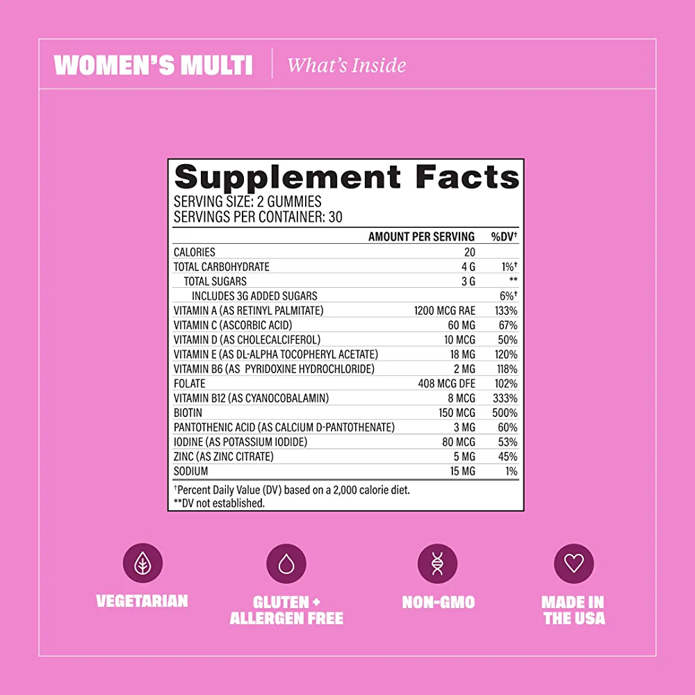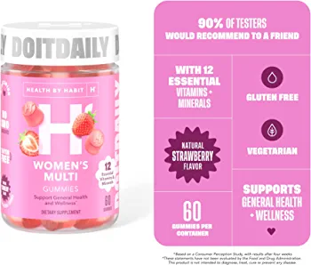 | nameOriginal | Health By Habit Womens Multivitamin Gummies (60 Gummies) – Non-GMO, Gluten Free, Allergen Free Vitamins A-E Plus Essential Biotin, Folate and Zinc, and More |