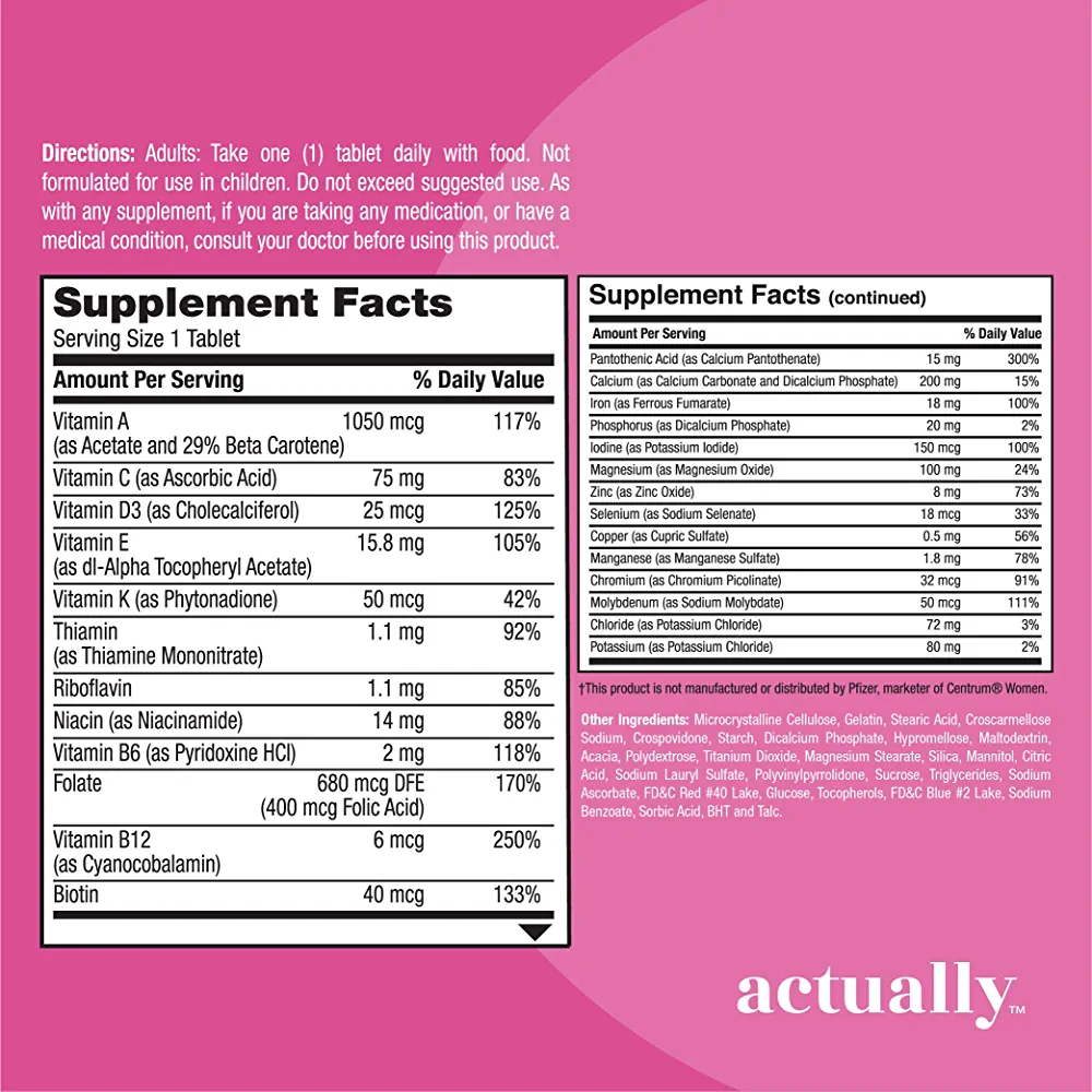 | nameOriginal | Actually Women’s Daily Multivitamin Tablets 120ct Supports Metabolism and Immune Health for Women – 120Day Supply, 120 Count |