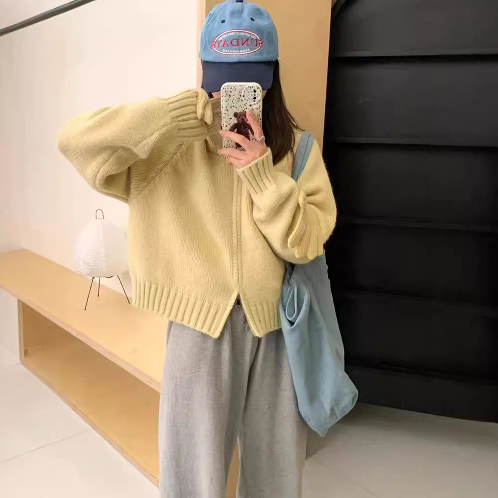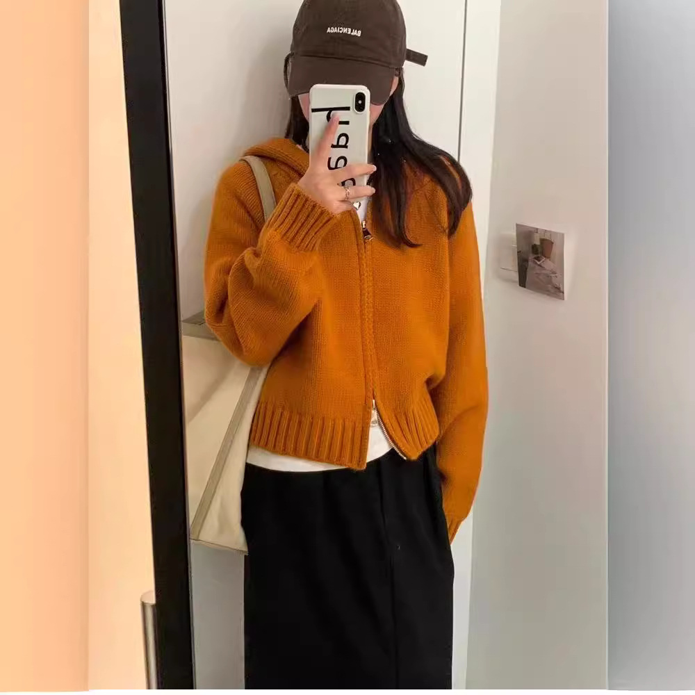 | nameOriginal | Women's New Arrival Loose Zipper Hooded Sweater Cardigan Women's 2024 Autumn and Winter Thickened All-Match Candy Color Sweater |