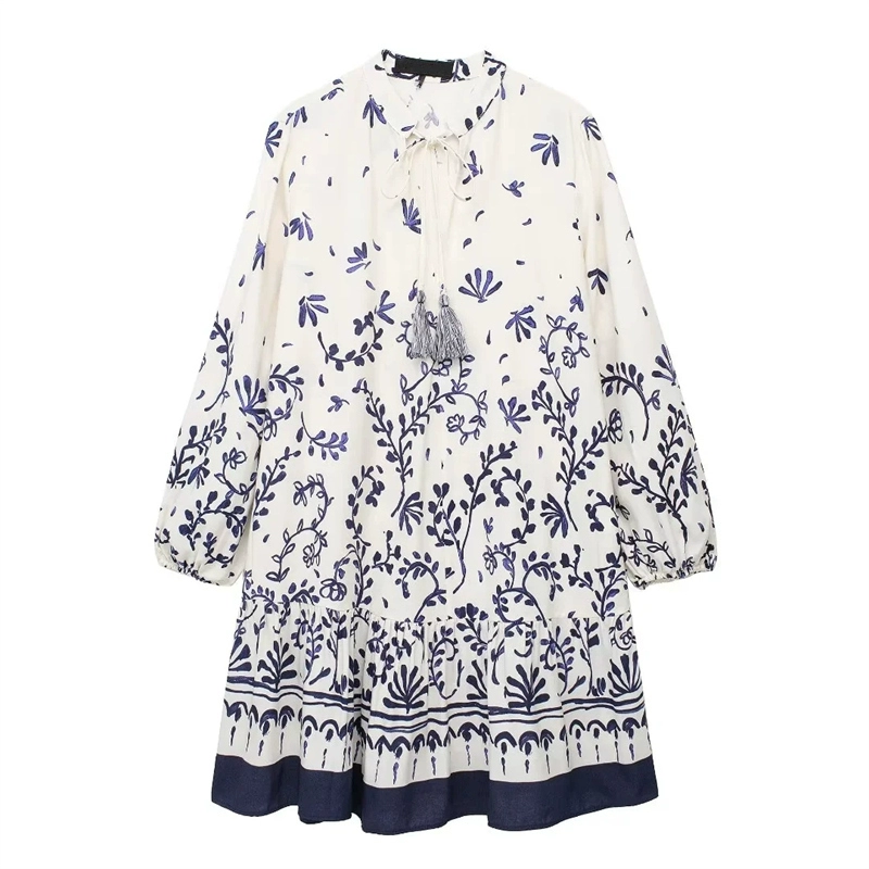 | nameOriginal | Women's New National Style Dress Blue and White Porcelain Print |