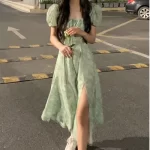 | nameOriginal | Women's new summer green retro dress short sleeves |