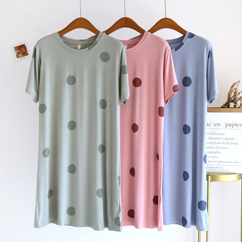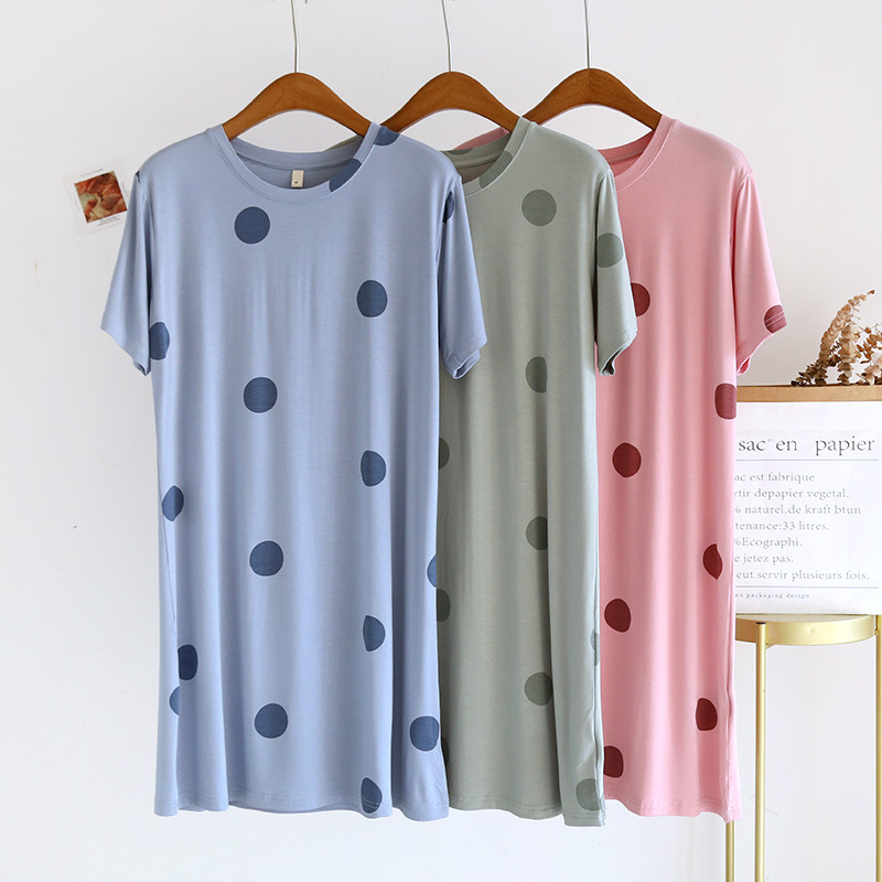 | nameOriginal | Women's New Summer Modal Dot Short-sleeved Nightdress Round Neck Thin Casual Simple Home Dress |
