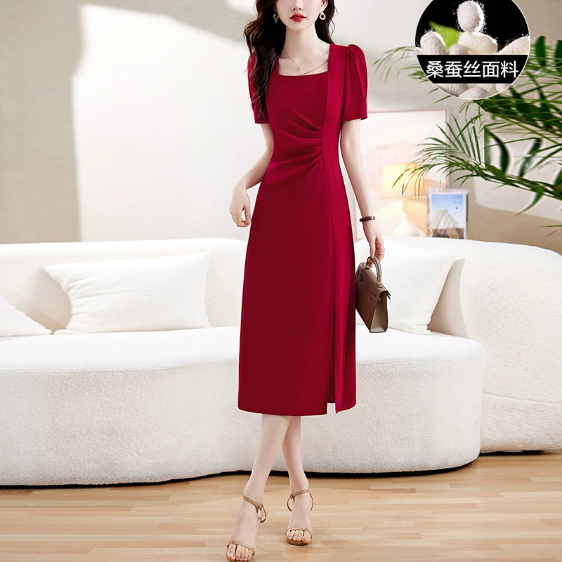 | nameOriginal | Women's new summer square collar temperament silk dress |