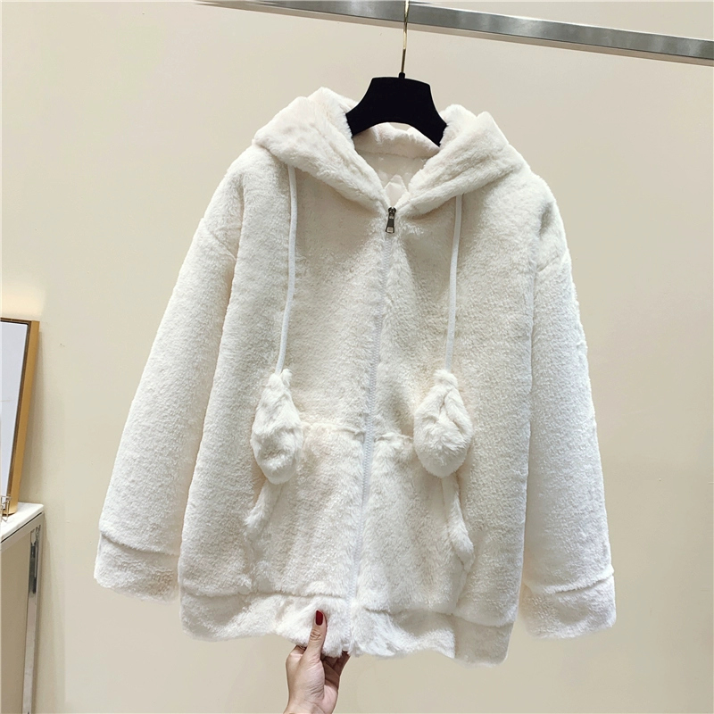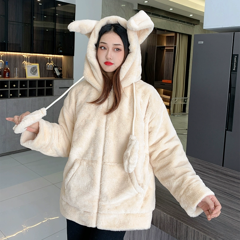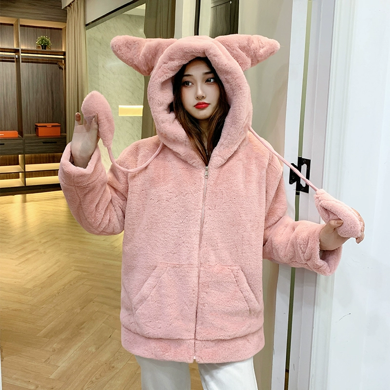 | nameOriginal | Women's new winter new solid color velvet thickened warm cotton coat with imitation rabbit fur hooded cotton coat with moving rabbit ears |