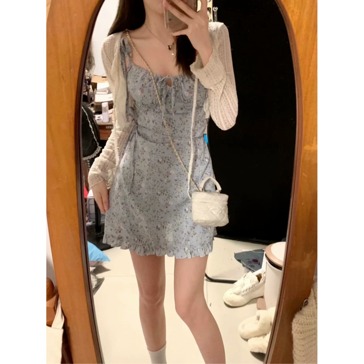| nameOriginal | Women's niche outfit suit summer floral suspender lace |