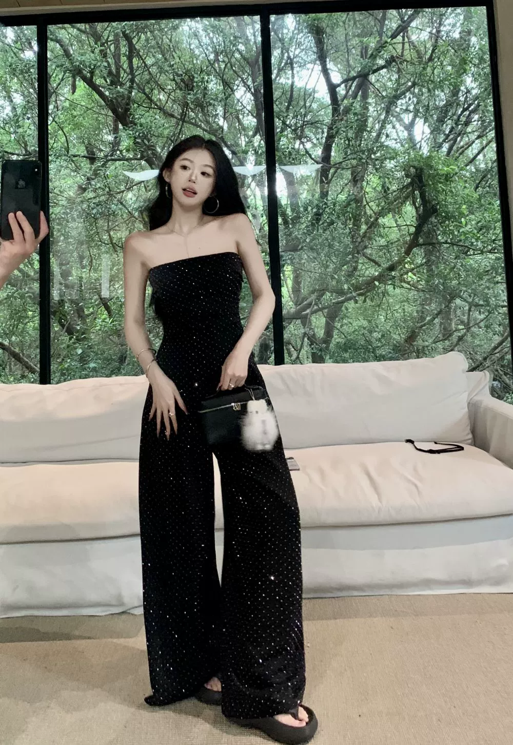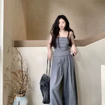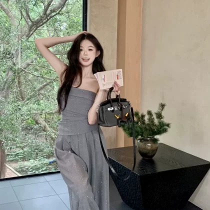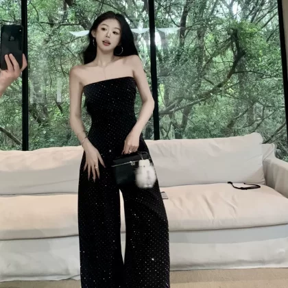 | nameOriginal | Women's niche tube top women's summer drapey floor-length pants with rhinestones |