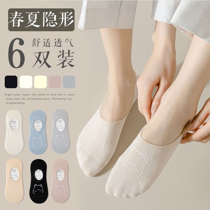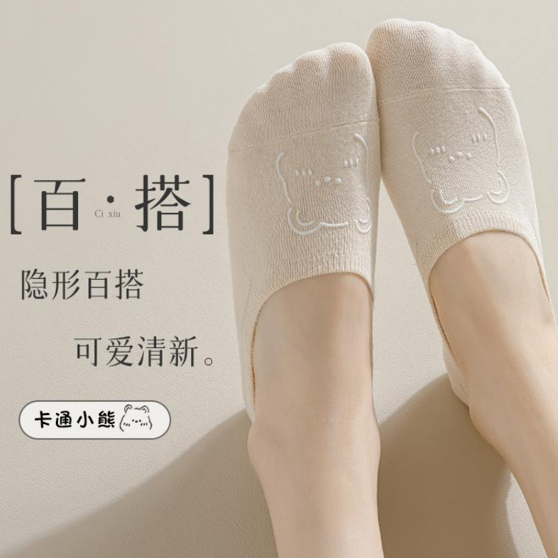 Women’s non-slip do not fall with the boat socks summer thin ins tide shallow mouth non-slip silicone cartoon bear invisible socks