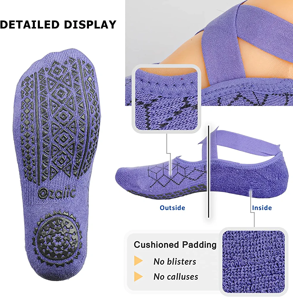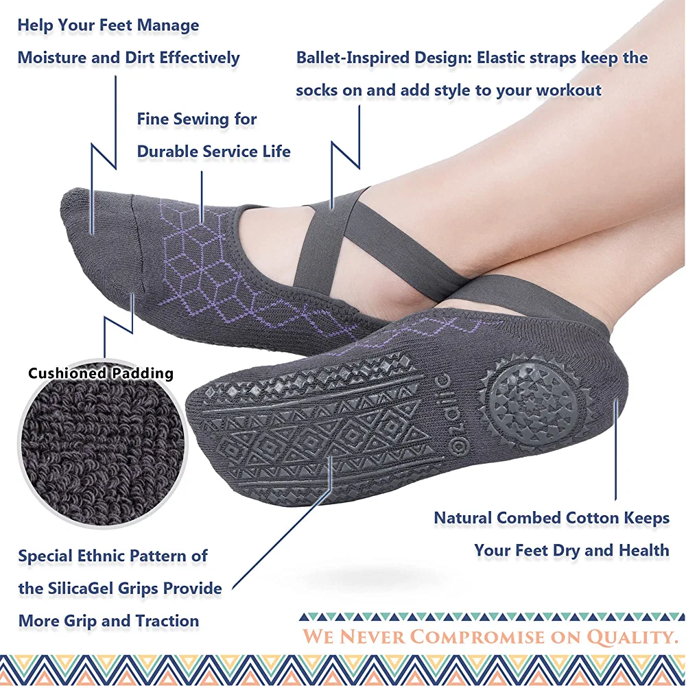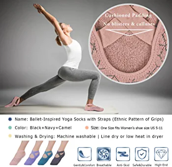 This product from Ozaiic boasts a patented design that fits women’s shoe sizes 5.5-11. It is made of high-quality combed cotton and features 100% silicone gel grips on the bottom, making it the perfect accessory for various exercises such as yoga, Pilates, barre, ballet, dance, gym, trampoline, boxing, or kickboxing. The unique ballet-inspired anti-skid design ensures a non-slip surface, preventing slip and fall accidents. It is also ideal for pregnant women, hospital patients, and the elderly.