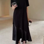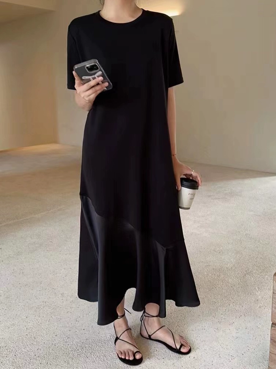 | nameOriginal | Women's over-the-knee little black dress summer casual short-sleeved fishtail |