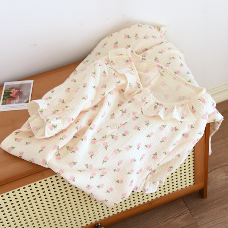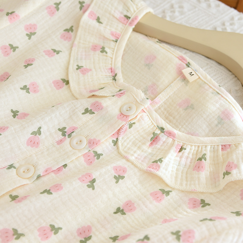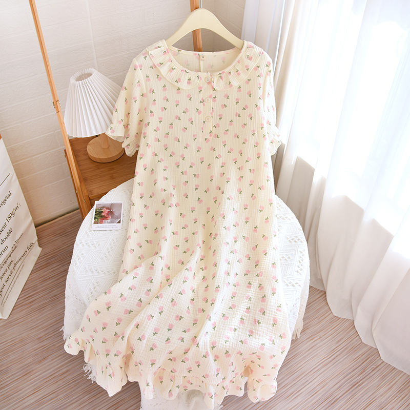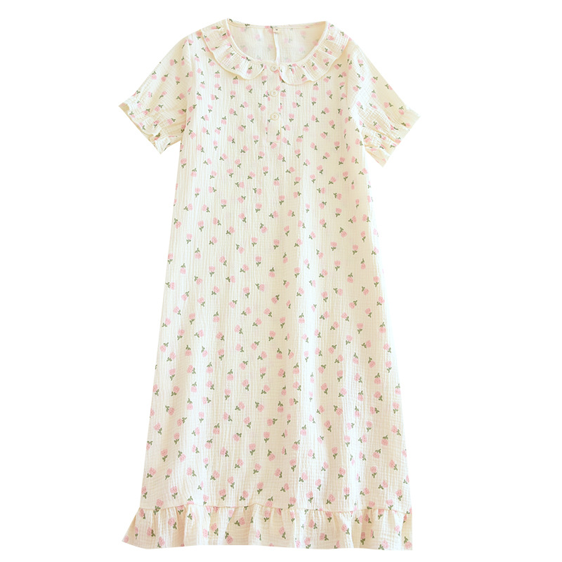 | nameOriginal | Women's pajamas crepe nightgown floral double gauze home clothing pullover nightgown short sleeve skirt wholesale generation |