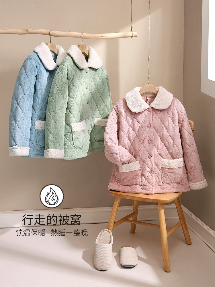 | nameOriginal | Women's pajamas winter three-layer thickened extra-thick quilted jacket flannel plus velvet coral velvet home wear autumn and winter style winter |