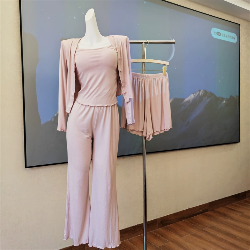 | nameOriginal | Women's pajamas with breast pads for all seasons, modal suspender suit, spring, summer, autumn and winter new pure lust style sexy home clothes |