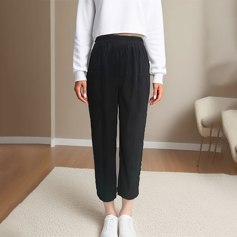 Women’s Pants 2024 New Corduroy Large Pocket Loose Stretch Waist Ankle-length Pants Women’s Commuting Solid Color Casual Pants
