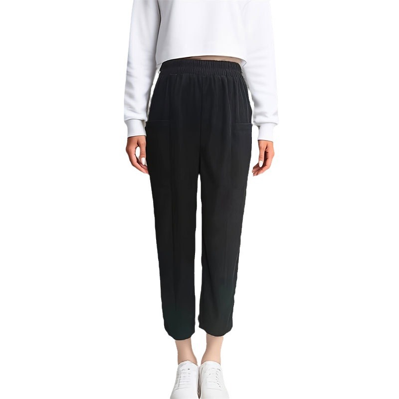 Women's Pants 2024 New Corduroy Large Pocket Loose Stretch Waist Ankle-length Pants Women's Commuting Solid Color Casual Pants