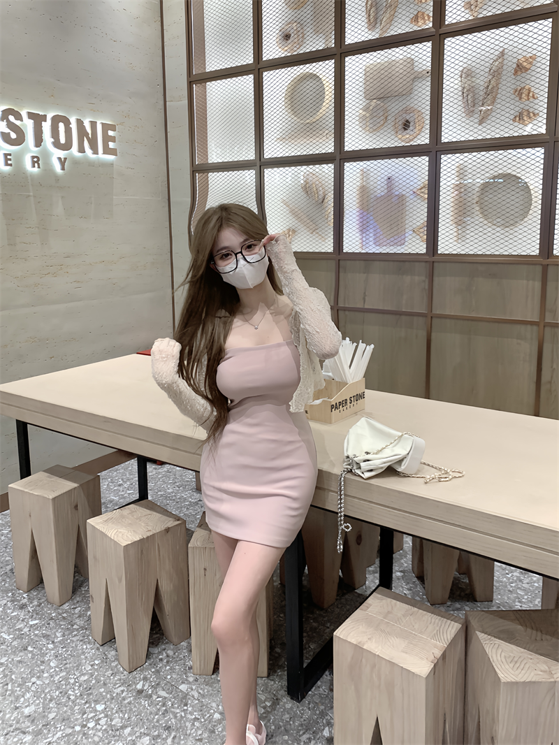 Women’s pink slim summer a-line suspender dress