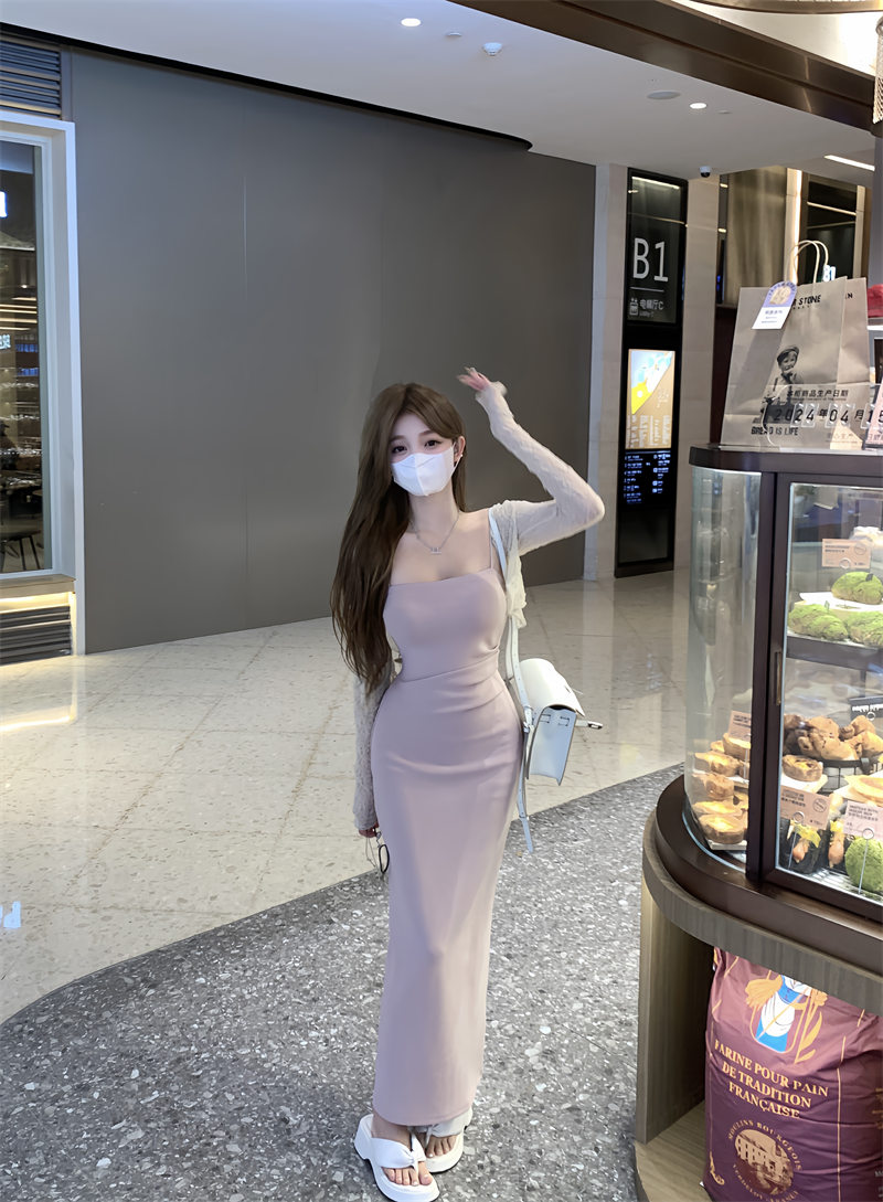 Women's pink slim summer a-line suspender dress