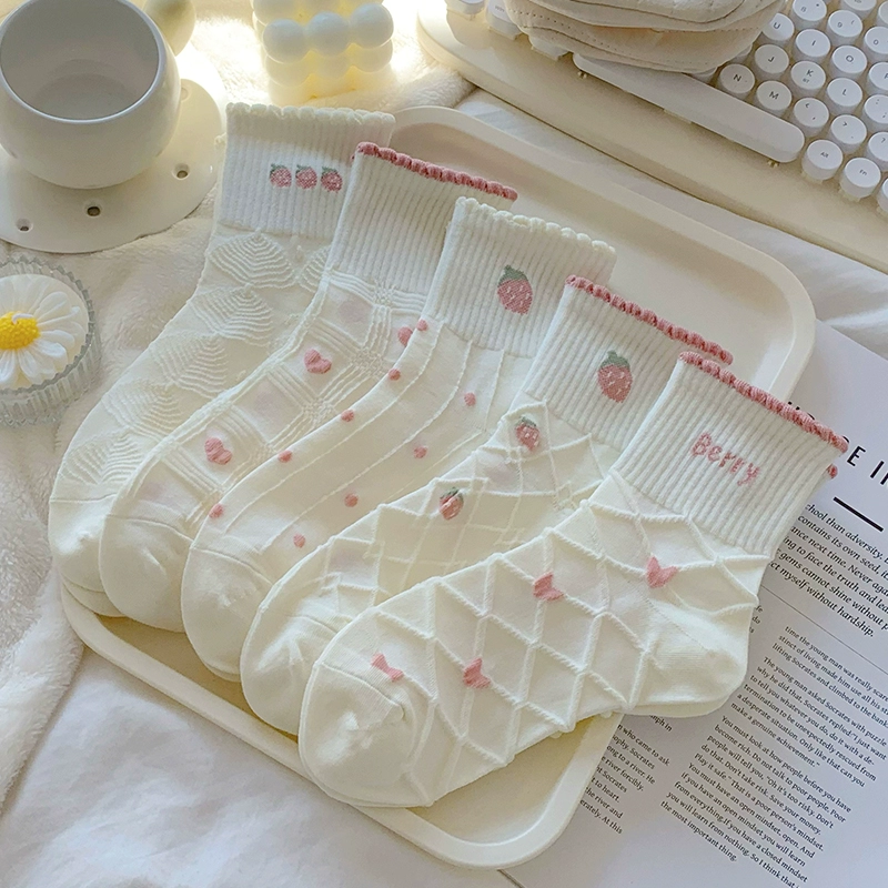 Women's Pink Versatile Sweet Summer Strawberry Socks