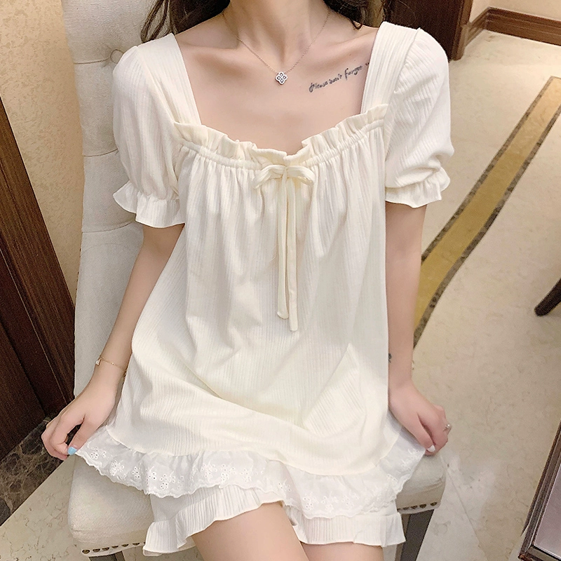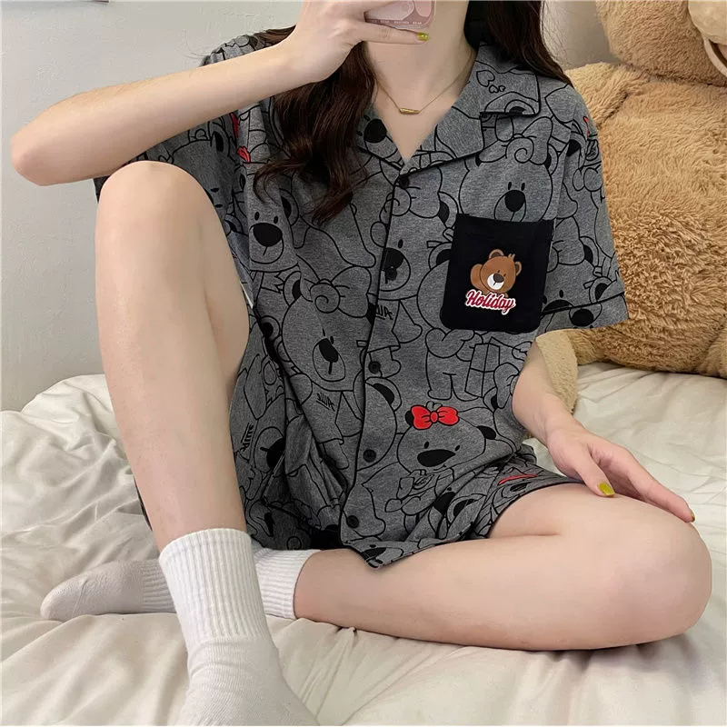 Female plaid cotton short -sleeved shorts summer pastoral pajamas