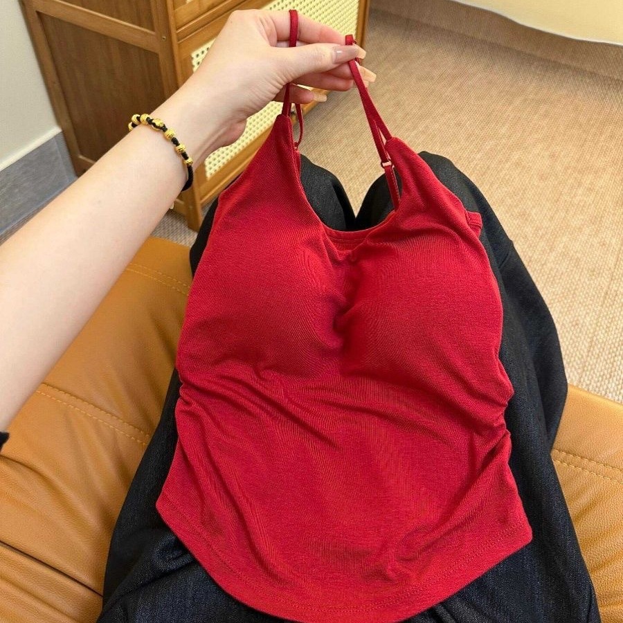 | nameOriginal | Women's Pleated Camisole Women's New Style Pure Sweet and Spicy Design with Chest Pad Inner Wear Outer Wear Slim-fit Beautiful Back Top |