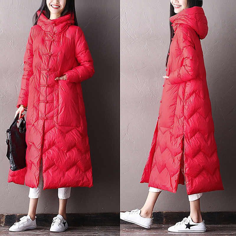 | nameOriginal | Women's plus size long over-the-knee hooded down jacket |