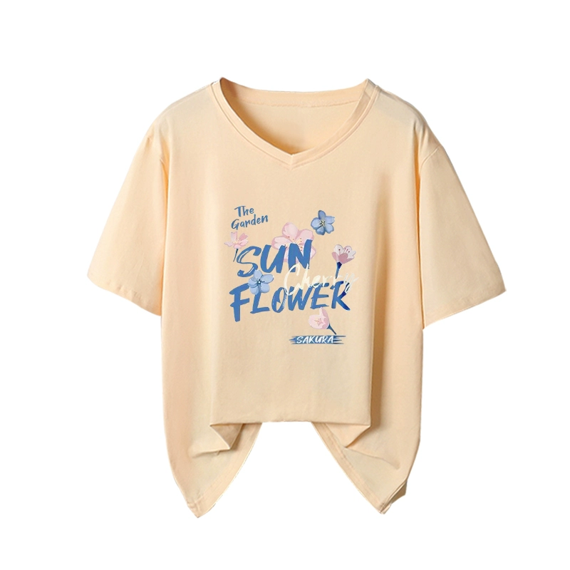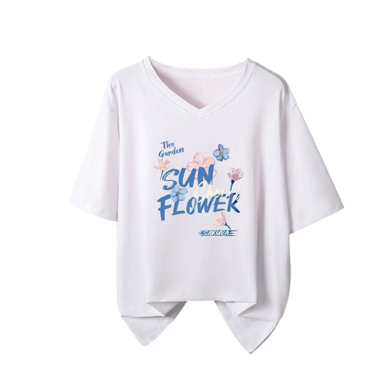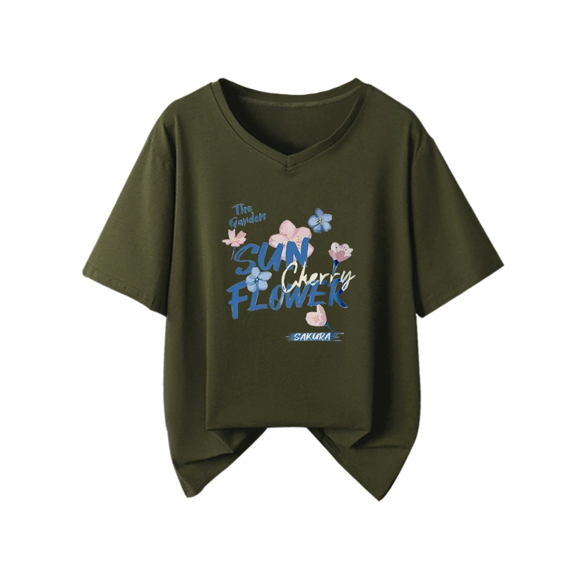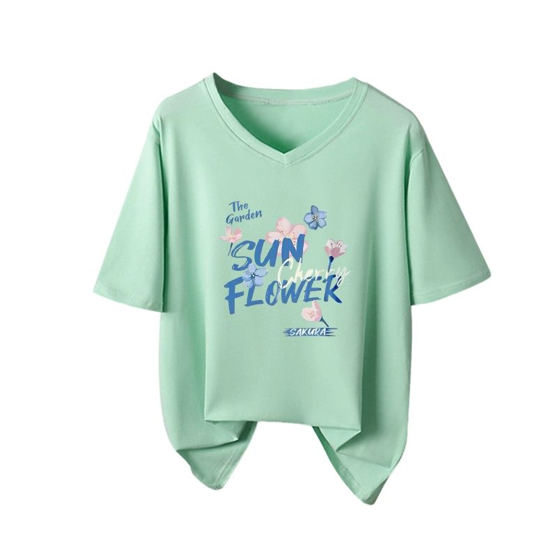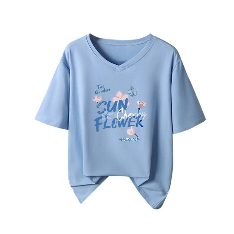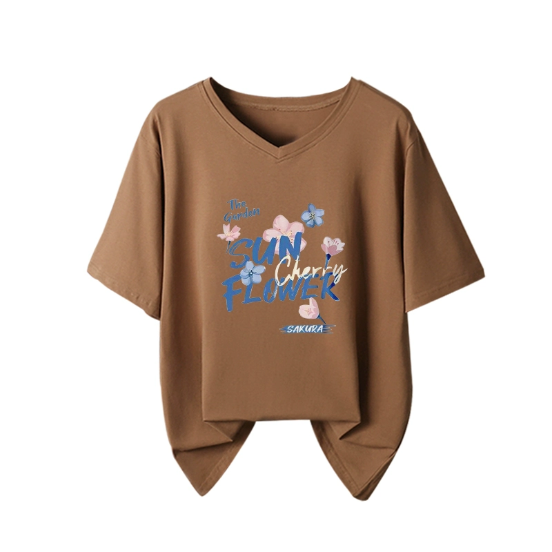 | nameOriginal | Women's plus size short sleeve v-neck pure cotton top loose t-shirt |