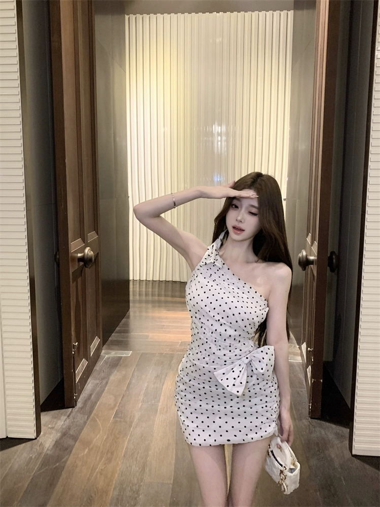| nameOriginal | Women's polka dot dress summer slimming bow |