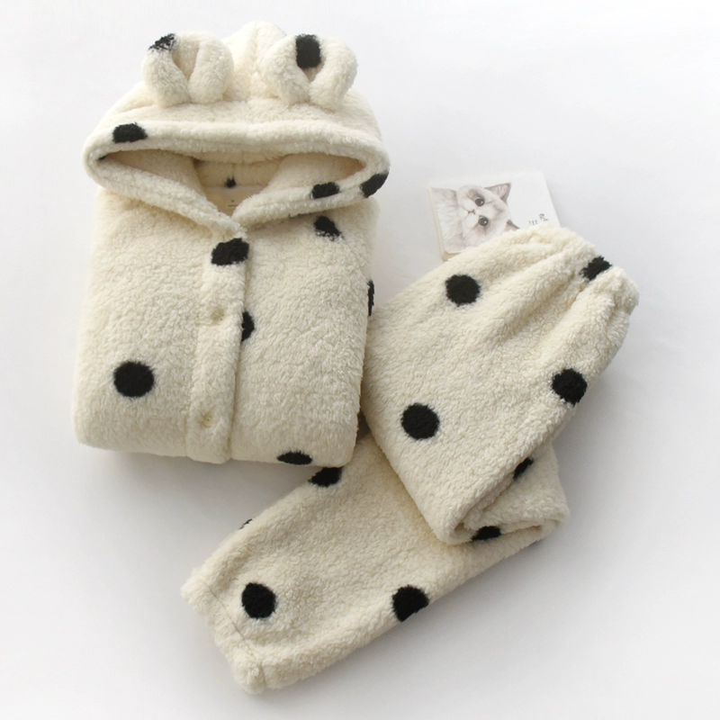 | nameOriginal | Women's polka dot hooded sherpa thickened warm pajamas |
