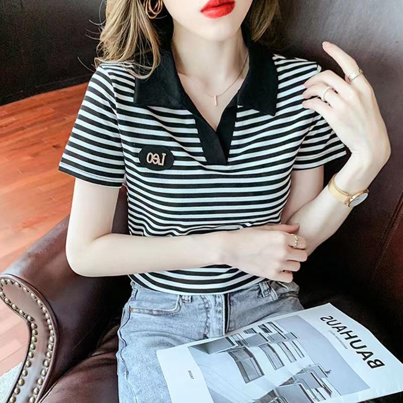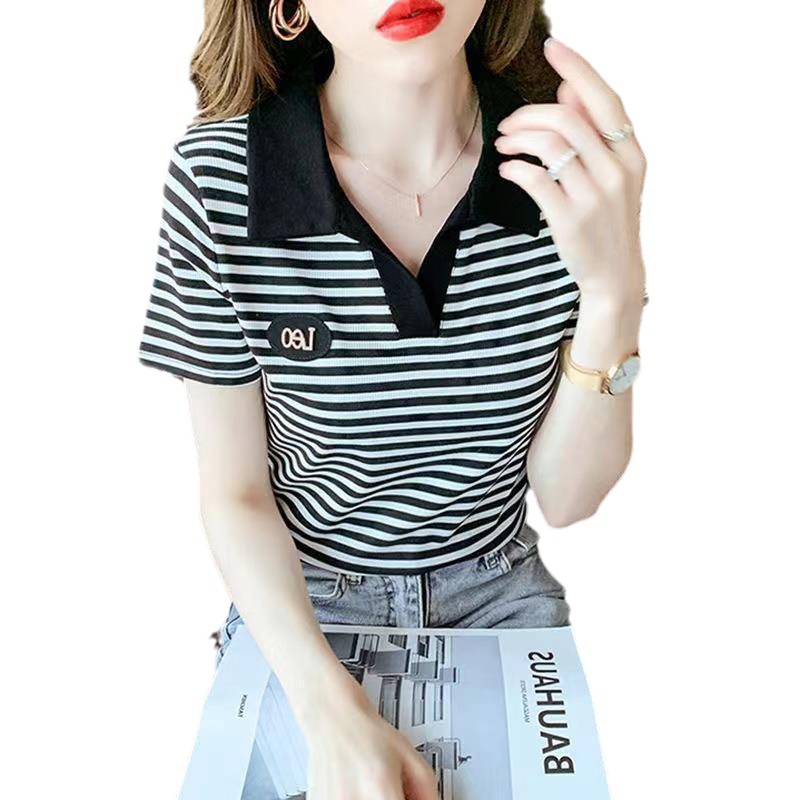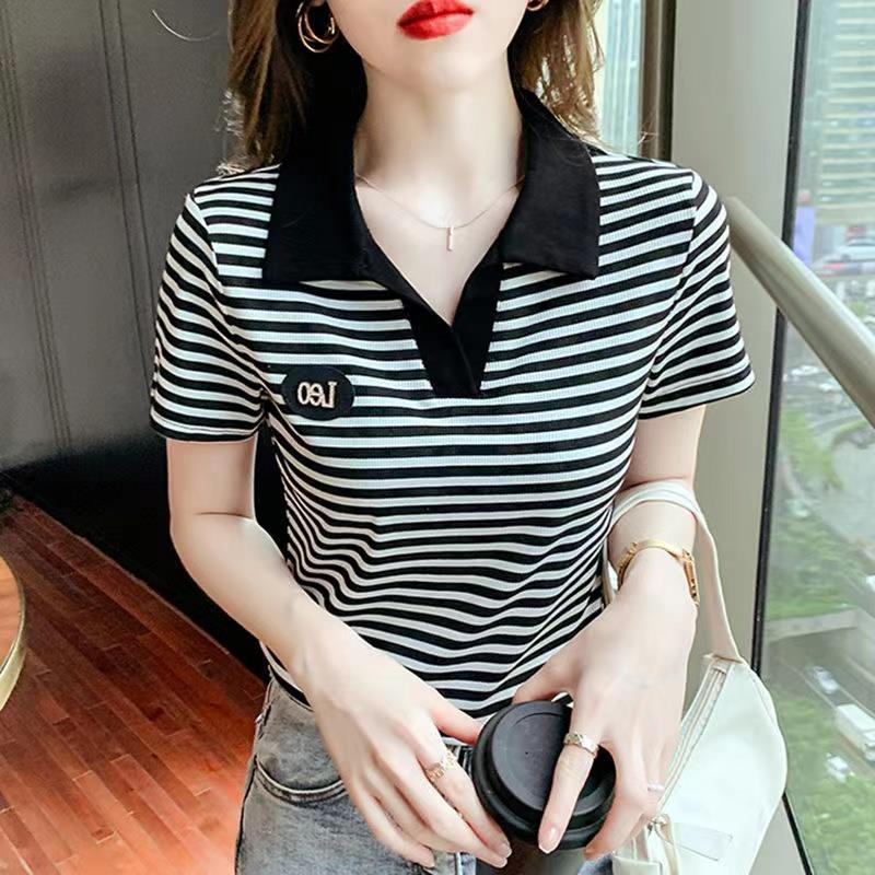 Women's polo shirt with lapel T-shirt 2024 new short-sleeved western style summer clothes for middle-aged and elderly women's top