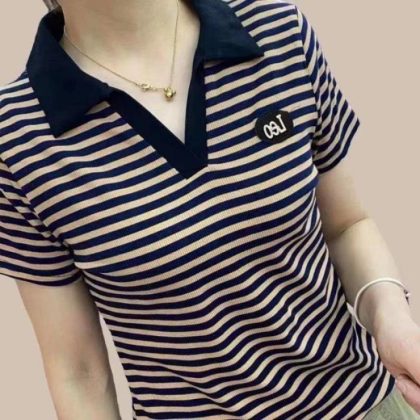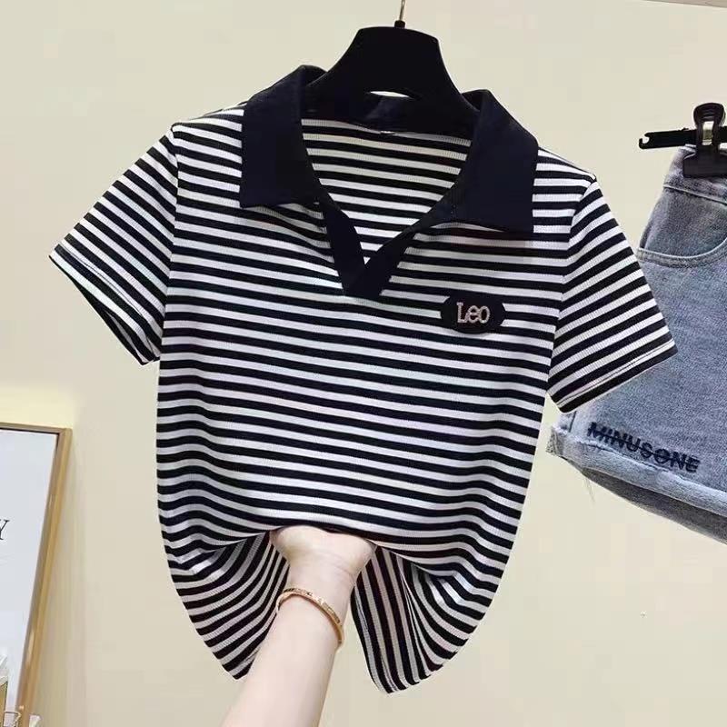 Women’s polo shirt with lapel T-shirt 2024 new short-sleeved western style summer clothes for middle-aged and elderly women’s top