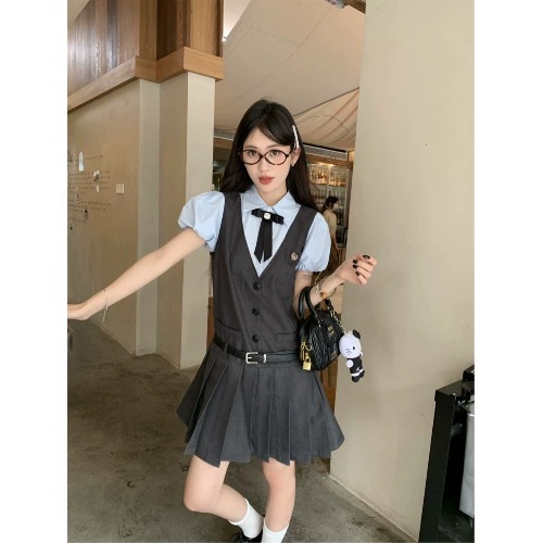 | nameOriginal | Women's preppy contrast color summer fake two-piece dress |