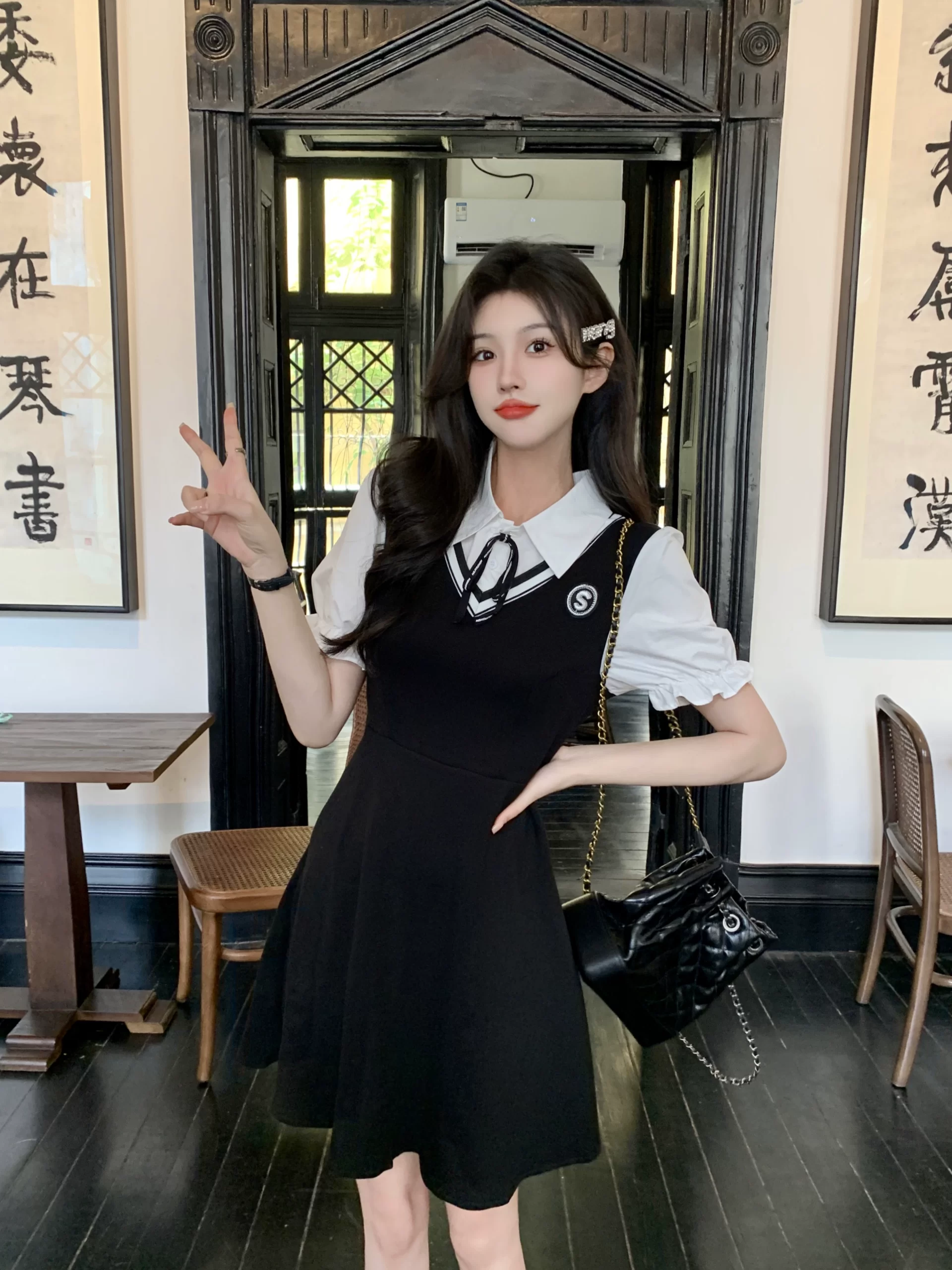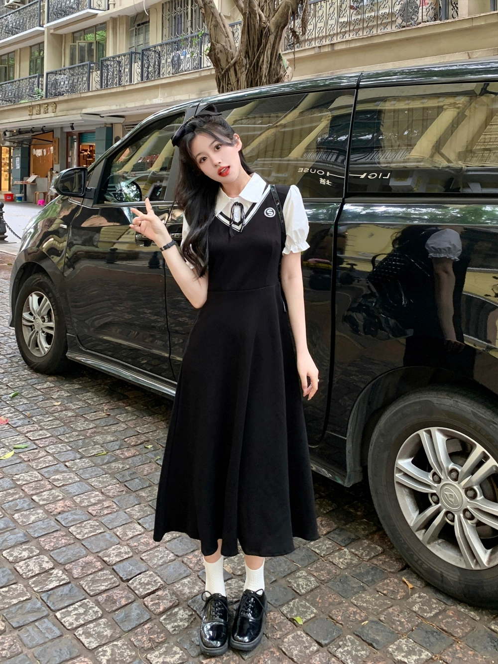 | nameOriginal | Women's preppy dress summer fake two-piece for fat mm |