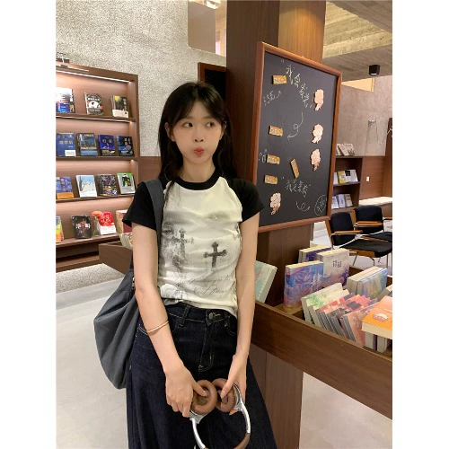 Women's Print Contrast Color Summer Slim Fit Short Sleeve T-Shirt