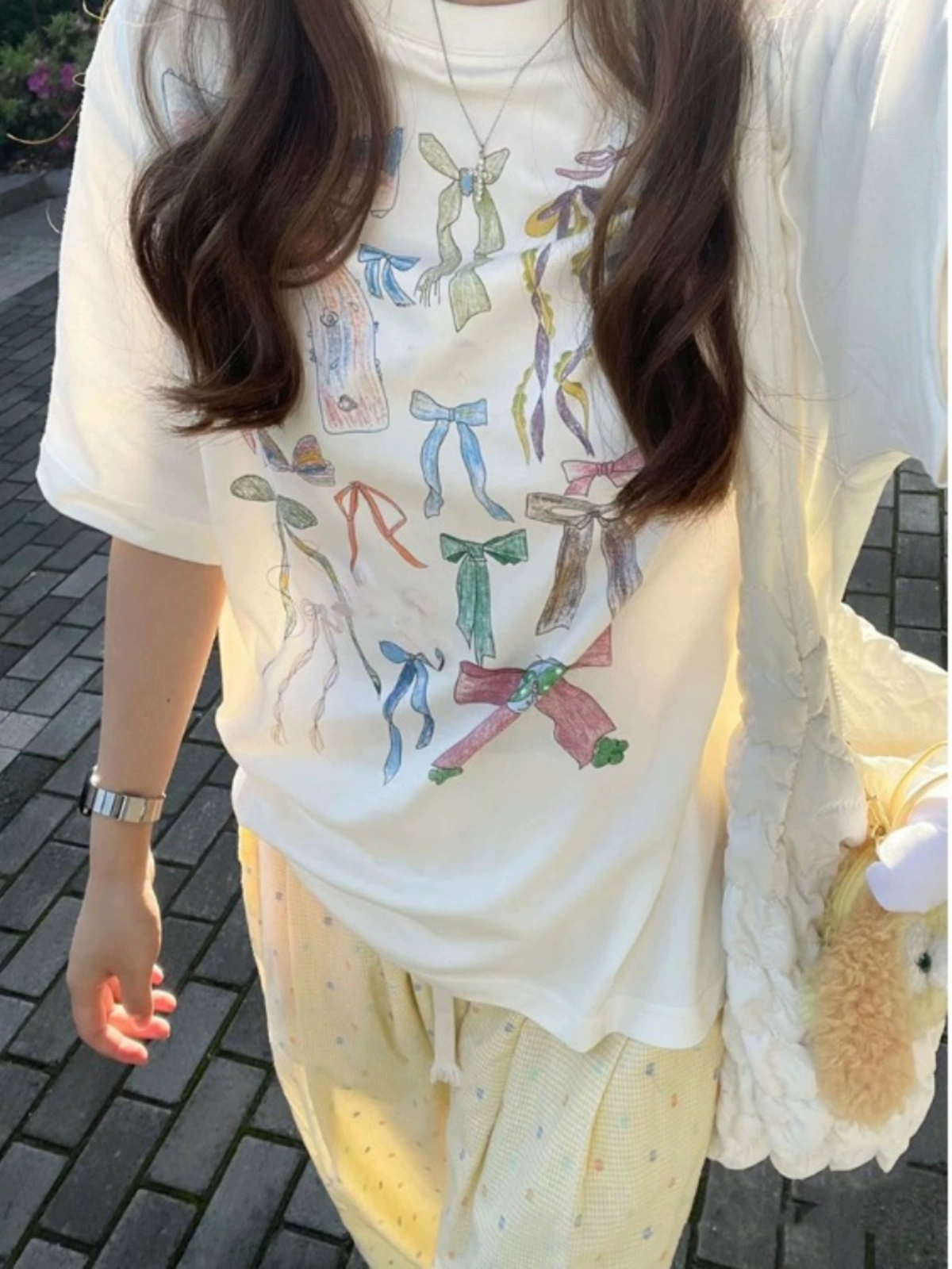 | nameOriginal | Women's Printed Short Sleeve Summer Loose Tops with Bows |