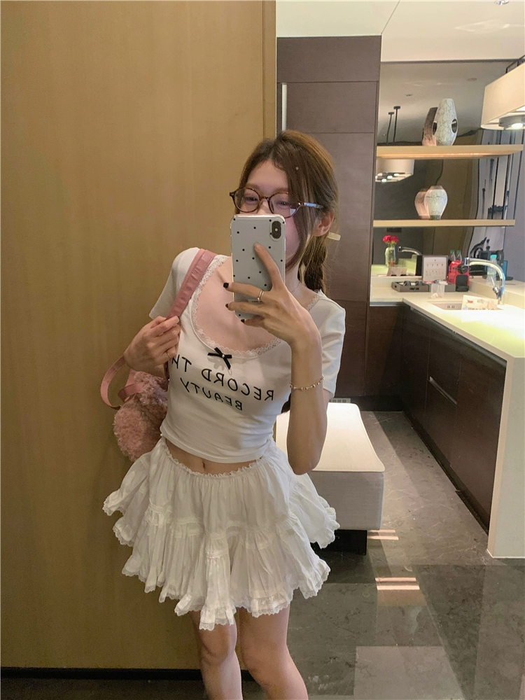 | nameOriginal | Women's Printed U-Neck Summer Lace A-Line Skirt T-Shirt |