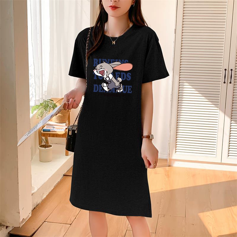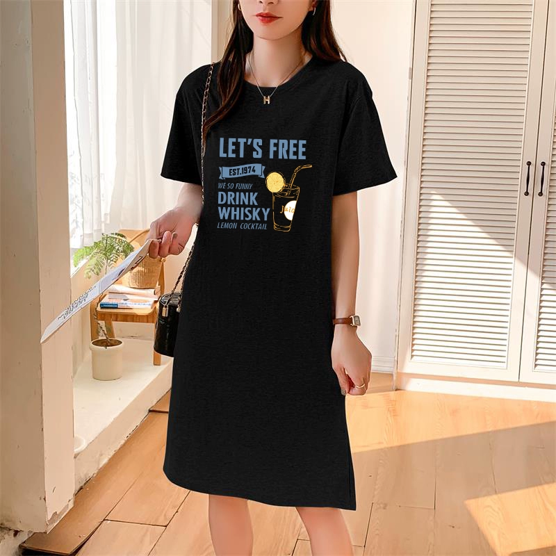| nameOriginal | Women's pure cotton black t-shirt dress summer casual short sleeves |