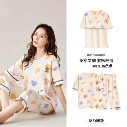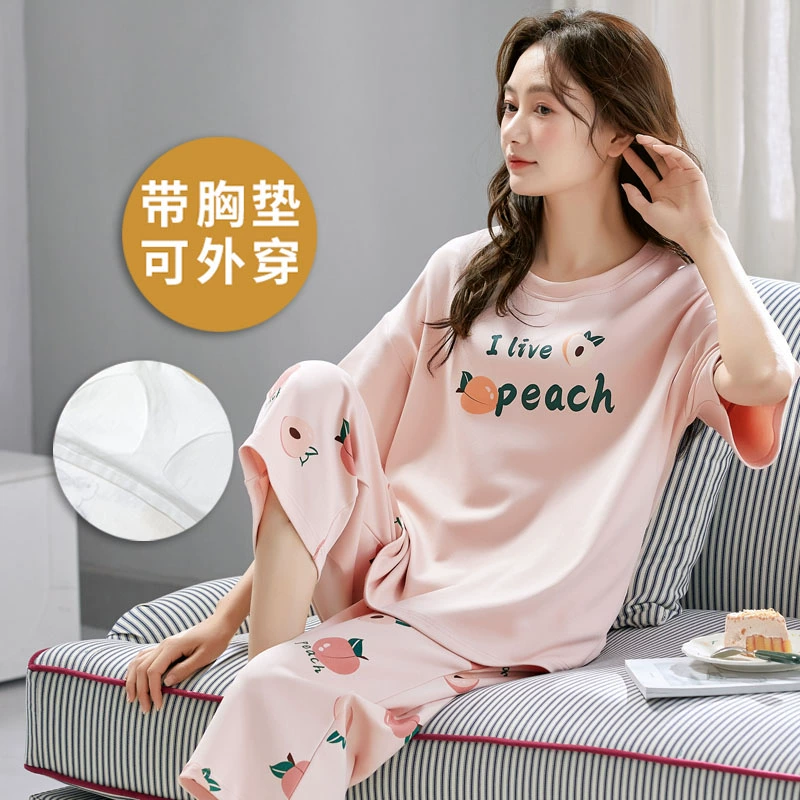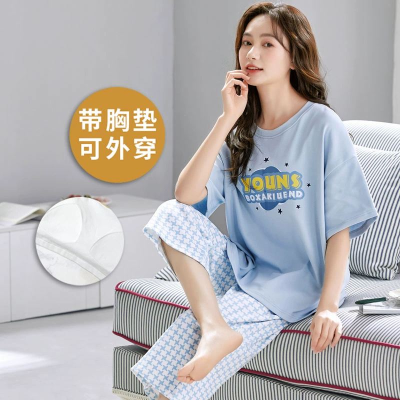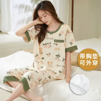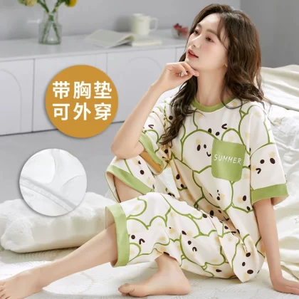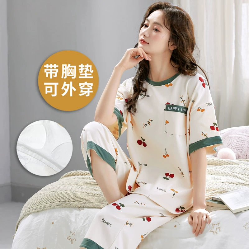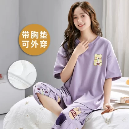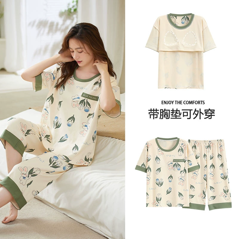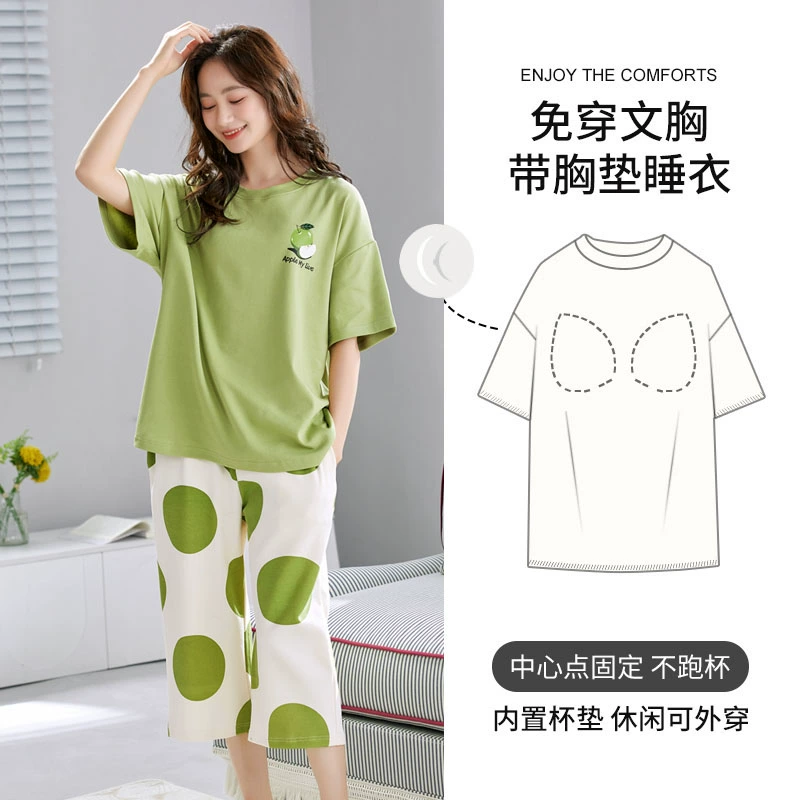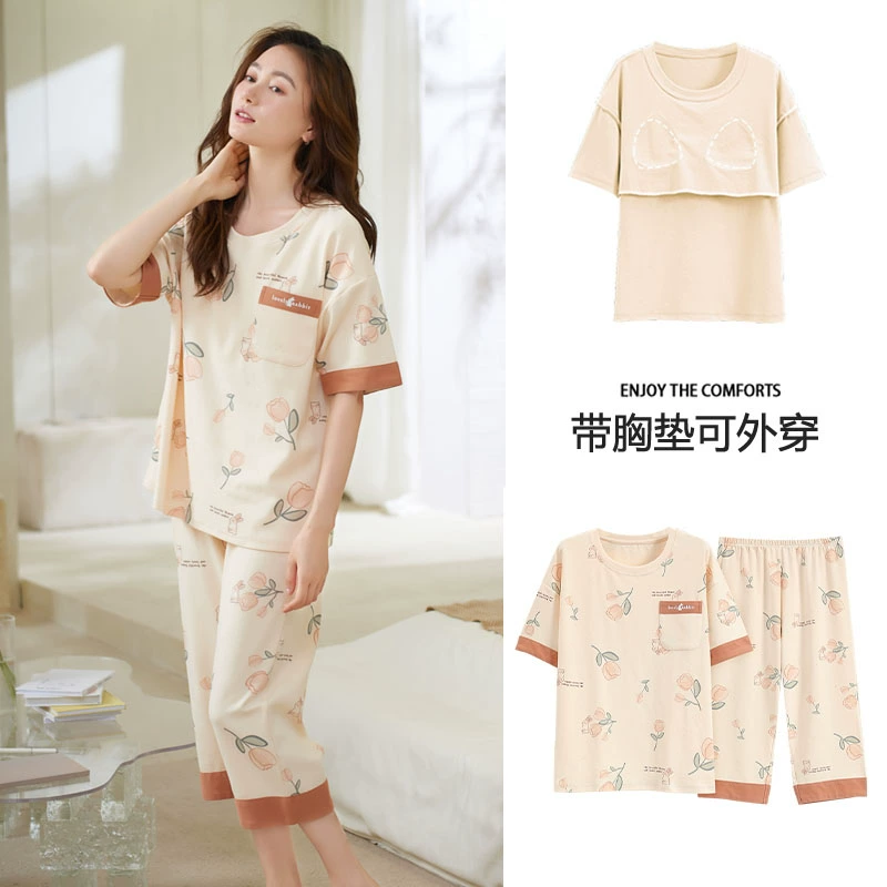 | nameOriginal | Women's pure cotton cropped pants with breast pads, Korean style floral pajamas |