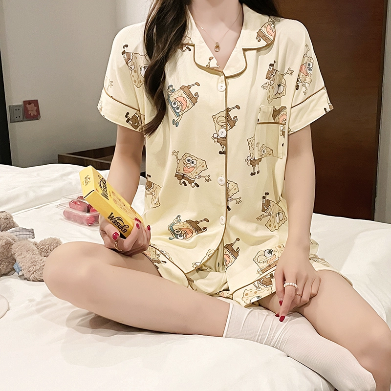 | nameOriginal | Women's pure cotton short-sleeved Korean style sweet and cute thin pajamas |