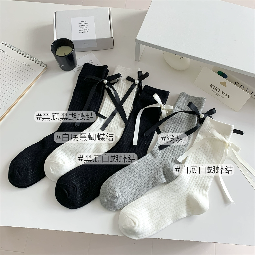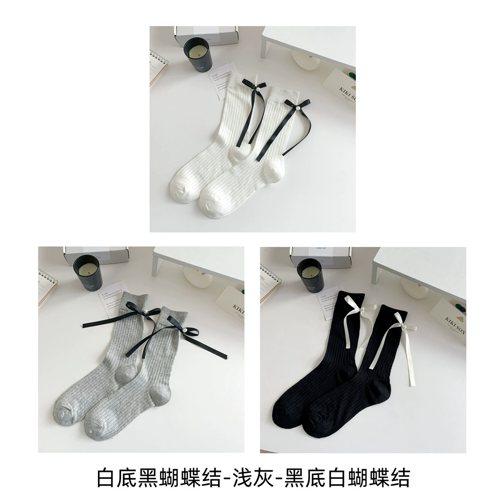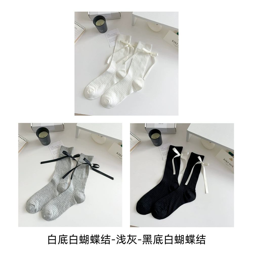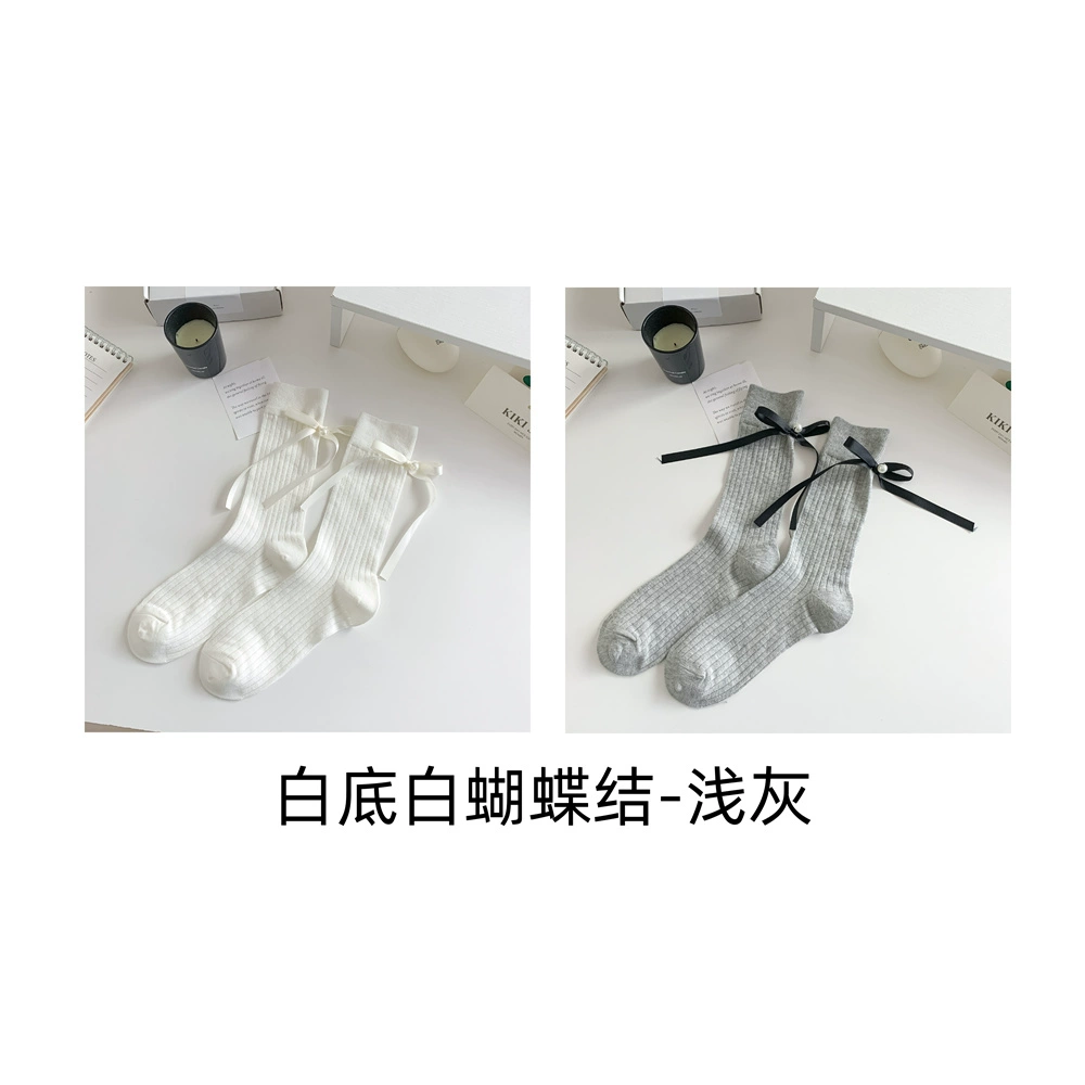 | nameOriginal | Women's pure cotton vertical pattern slimming heel bow socks |