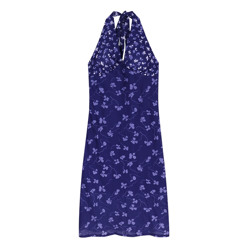 | nameOriginal | Women's purple backless dress summer halter neck strap |