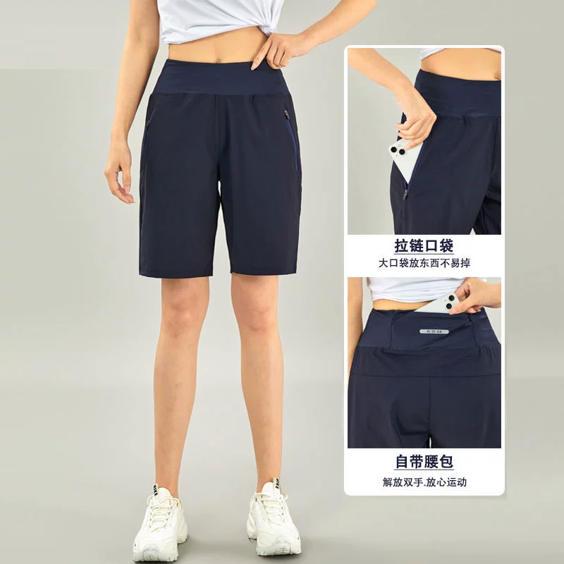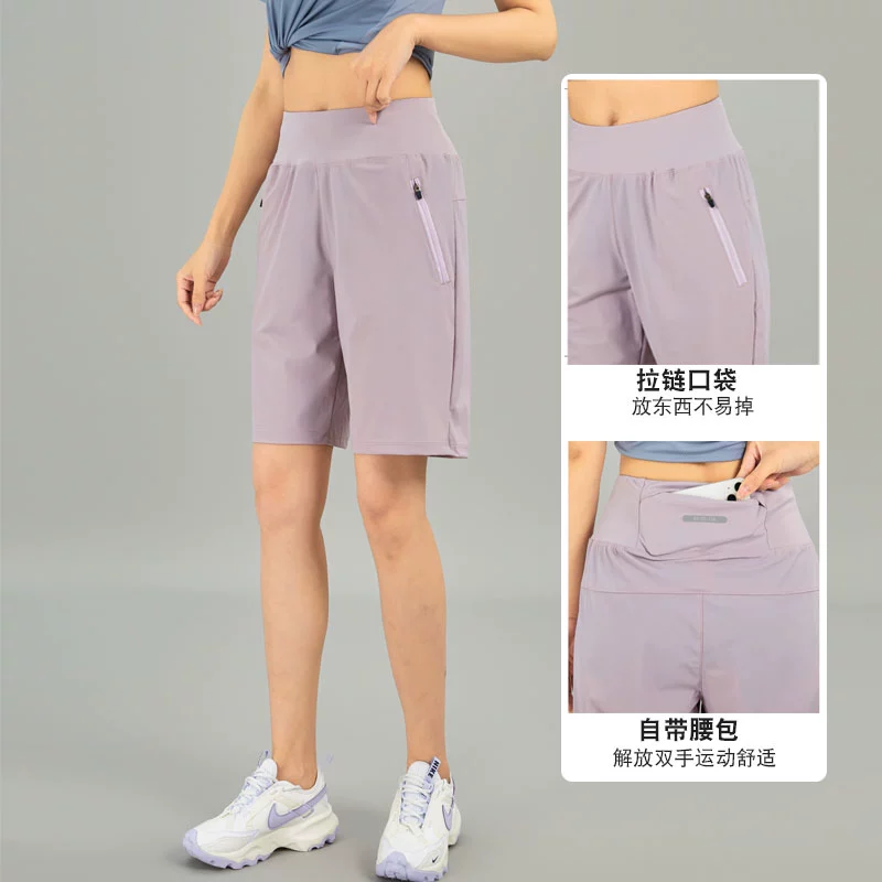 Women’s quick-drying loose large size outdoor zipper pocket shorts