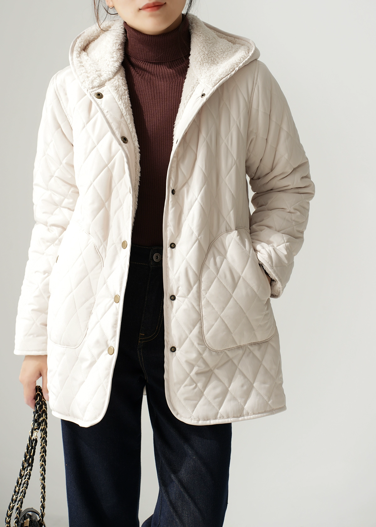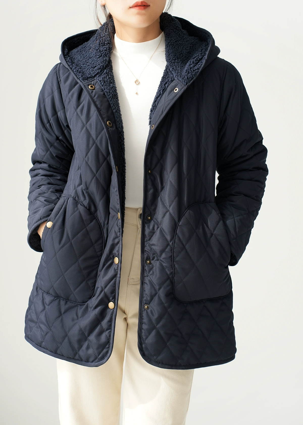 | nameOriginal | Women's quilted hooded mid-length fleece coat |