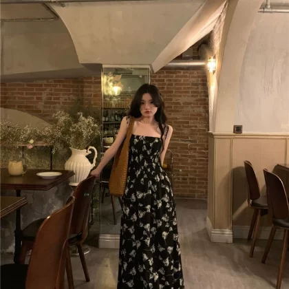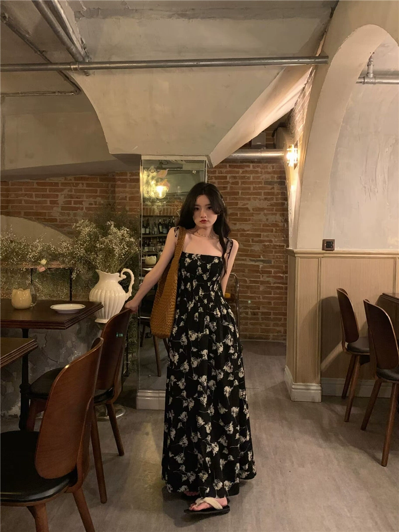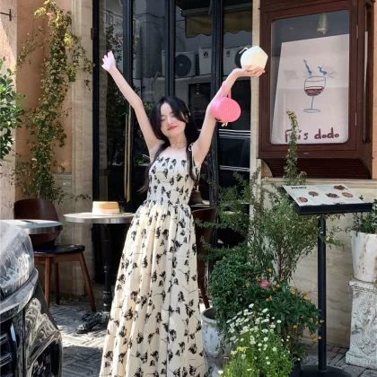 | nameOriginal | Women's resort style beach dress floral suspenders |