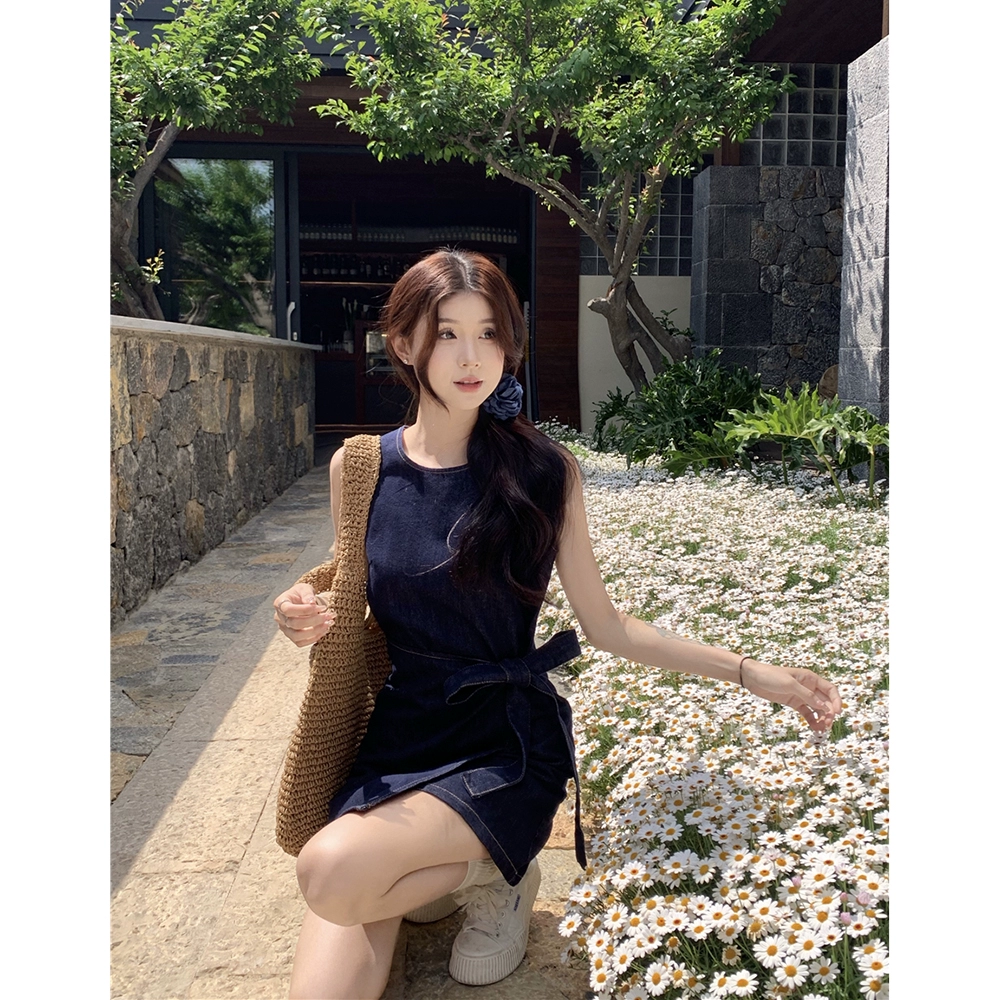 | nameOriginal | Women's retro denim sundress with bow tie |