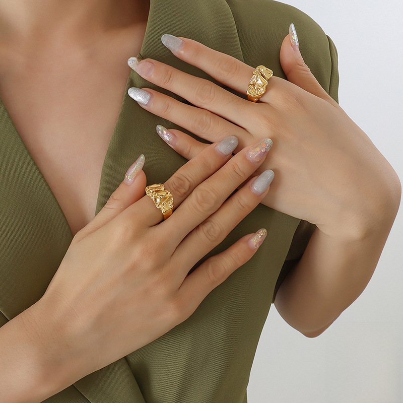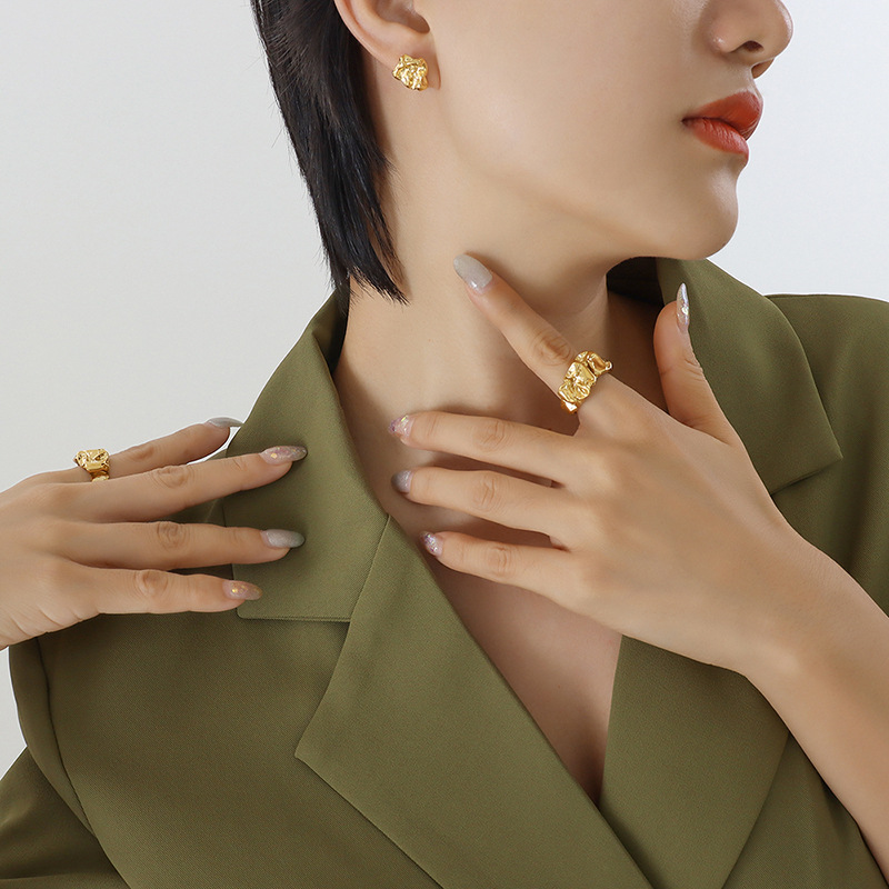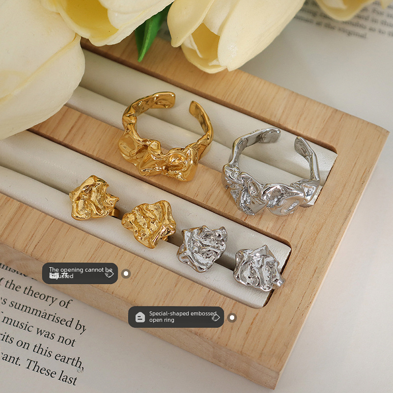 | nameOriginal | Women's Retro Elegant Personality Korean Niche Design Embossed Chic Bump Ring Earrings Jewelry Set |